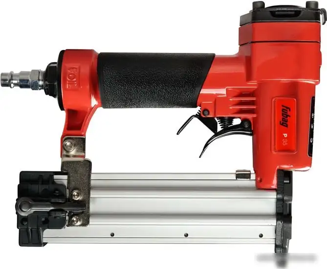 Fubag P35 100162 — это пневматический пистолет, который предназначен для работы со шпильками длиной от 10 до 35 мм и с сечением ножки 2,3 мм. Он расходует всего 0,4 литра воздуха за удар, что помогает экономить энергию и воздух. Пистолет оснащён магазином на 100 шпилек, что позволяет работать длительное время без частой перезарядки. Он имеет предохранитель для безопасной эксплуатации и компактный размер (22,5 см длиной и вес менее 1 кг), что делает его удобным в использовании. Благодаря лёгкому весу, менее 1 кг, пользоваться им удобно и он не утомляет руки. Этот инструмент отлично подходит для домашних и профессиональных задач, связанных с креплением шпилек.