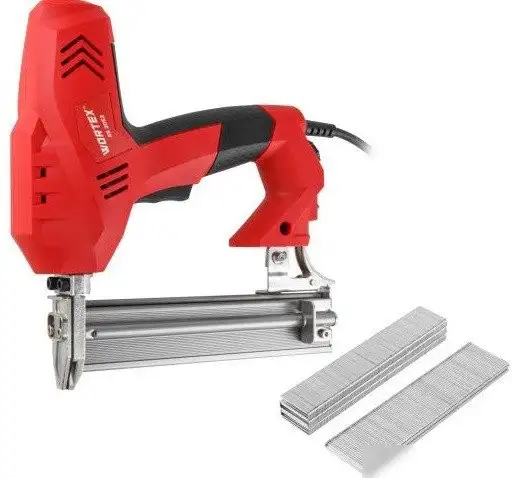 Wortex ES 2053 — это электрический пистолет для забивания гвоздей и скоб. Он работает мощностью 2300 Вт и способен выполнять до 60 ударов в минуту, что помогает быстро завершить работу. Устройство использует гвозди длиной до 30 мм и скобы шириной 5.2 мм, регулируя силу удара для различных материалов. Магазин рассчитан на 100 гвоздей или скоб, что уменьшает необходимость частой перезарядки. Питание осуществляется от электросети, а предохранитель обеспечивает безопасную работу. В комплект входят 500 гвоздей, 500 скоб и паспорт. Такой инструмент отлично подойдет для строительных, ремонтных и отделочных работ.