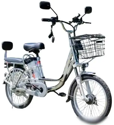 Электровелосипед AVM.Plus E-ALFA 20 в серебристом цвете отлично подходит для городских поездок. Он оснащён амортизационной вилкой, которая делает поездки более комфортными на неровных дорогах. Велосипед обладает передним и задним барабанными тормозами, обеспечивающими хорошую остановку. Диаметр колёс 20 дюймов помогает легко маневрировать в городе. Вертикальный руль и прогулочное седло делают поездки удобными. Литий-ионный аккумулятор мощностью 12 А•ч позволяет проехать около 50 км на одной зарядке, а время зарядки составляет 8 часов. Электродвигатель мощностью 250 Вт достигает скорости до 45 км/ч и помогает быстрее добираться до места. В комплект входят передний щиток, защита цепи, зеркало и корзина спереди для удобства. Этот электровелосипед прост в управлении и подходит для ежедневных городских поездок.