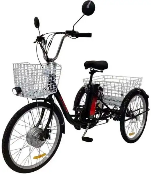 Электровелосипед AVM E-Alfa Trike 24 предназначен для городских поездок и подростков. Он имеет прочную раму из стали Hi-ten и 24-дюймовые колёса с легкими алюминиевыми ободьями, обеспечивая стабильность и комфорт. Восьмимеденная трансмиссия с одним звёздочными системой проста в использовании. Электровелосипед оборудован двухдисковыми тормозами, которые быстро останавливают транспортное средство. Максимальная скорость — 25 км/ч, а при этом он способен проехать до 50 км на одной зарядке аккумулятора типа Li-ion емкостью 15 А•ч. В комплект входят защитные щитки, задний и передний фонари, зеркало заднего вида, звонок и корзины спереди и сзади. Управление оснащено вертикальным рулём, седлом с пружинами и платформенными педалями для удобства. Электровелосипед требует наличия водительского удостоверения и регистрации в ГАИ, если максимальная скорость или мощность превышают установленные нормы. Он подходит как для подростков, так и для взрослого пользователя, заботясь о безопасности и устойчивости во время езды.