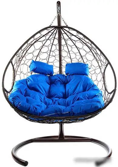 Подвесное кресло M-Group Для двоих 11450210 (коричневый ротанг/синяя подушка)
