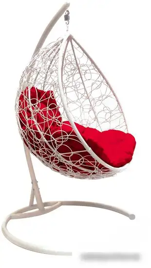 Подвесное кресло M-Group Капля 11020106 (белый ротанг/красная подушка)