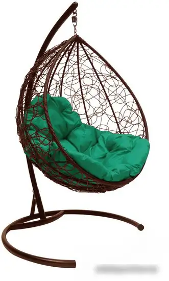Подвесное кресло M-Group Капля 11020204 (коричневый ротанг/зеленая подушка)