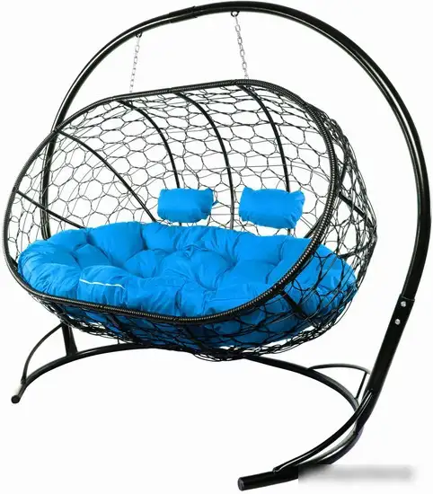 Подвесной диван M-Group Лежебока 11180410 (с черным ротангом/синяя подушка)