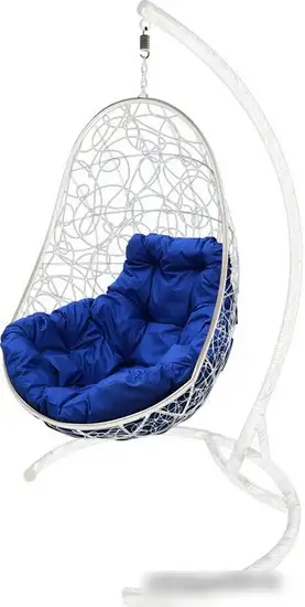 Подвесное кресло M-Group Овал 11140110 (белый ротанг/синяя подушка)
