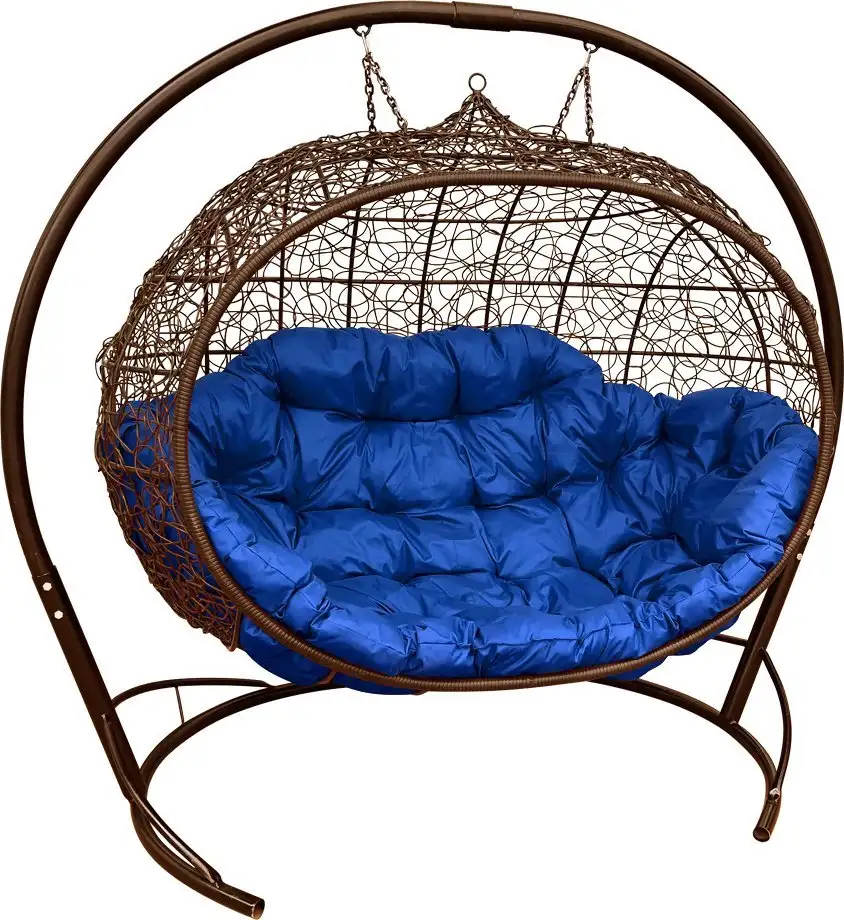Подвесной диван M-Group Улей 11210210 (коричневый ротанг/синяя подушка)