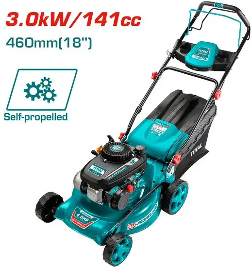 Газонокосилка Total TGT141182 — мощное и удобное устройство для ухода за газоном. Она оснащена бензиновым двигателем Zongshen мощностью 4.02 л.с., который легко справляется с косильной работой. Ширина обработки составляет 46 см, а высота скашивания регулируется в 7 позициях от 25 до 75 мм. Она обладает самоходным механизмом, что облегчает управление и уменьшает усилия при работе. Травосборник объемом 60 литров обеспечивает длительный сбор травы без частого опорожнения. Модель имеет централизованную регулировку высоты и мягкий травосборник, что повышает комфорт работы. Конструкция из стали и пластиковые колёса делают устройство прочным и легким для маневрирования.