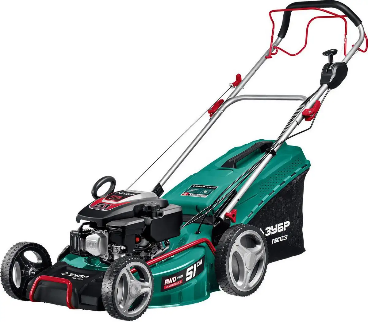 Газонокосилка Зубр Мастер ГБС-510 — это мощная и удобная машина для ухода за газоном. Она работает на бензиновом двигателе мощностью 6.5 л.с., что позволяет косить даже большие участки быстро и легко. Ширина обработки составляет 51 см, а высота — регулируется в пределах от 25 до 75 мм, что помогает достичь желаемого результата. Машина имеет травосборник объемом 70 литров и функцию мульчирования, чтобы удобрять газон. Благодаря самоходной конструкции и заднему приводу, управление становится проще и комфортнее. Она оснащена 7 уровнями регулировки высоты, есть штуцер для промывки деки и установка централизованной регулировки.