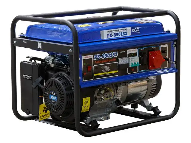 Бензиновый генератор ECO PE-8501S3 работает на бензине АИ-92 и предназначен для работы в промышленности и на строительных площадках. Он имеет мощность до 6,5 кВт, что позволяет запускать различные строительные и бытовые устройства. Генератор оснащен четырехтактным двигателем объемом 420 см³, который работает на 25-литровом топливном баке и обеспечивает непрерывную работу почти 9 часов. Он оборудован системой воздушного охлаждения, индикаторами уровня топлива и масла, а также вольтметром для контроля параметров. Генератор защищен от перегрузки и подходит для питания техники на 220 и 380 В. Устройство весит 84 кг и имеет компактные размеры, что облегчает его транспортировку и использование.