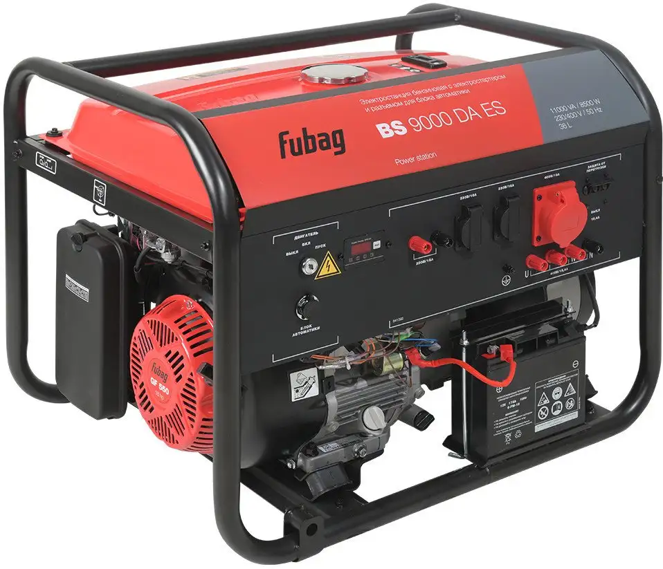 Бензиновый генератор Fubag BS 9000 DA ES — это мощный и надежный источник электроснабжения. Он работает на четырехтактном двигателе объемом 550 см3 с воздушным охлаждением и емкостью топливного бака 36 литров, что позволяет долго работать без дозаправки. Генератор имеет максимальную мощность 11 кВт и работает с тремя фазами, обеспечивая стабильное электроснабжение. Он оснащен электростартером для удобства запуска и защитой от перегрузки, что делает его безопасным в использовании. Генератор подходит для работы в различных условиях и легко подключается к оборудованию через розетки 220 В и 380 В. Он имеет уровень шума 84 дБА и весит 104,5 кг, что позволяет использовать его в промышленных и строительных сферах. В комплект входит все необходимое для начала работы, включая вилки, ключи и инструкцию.