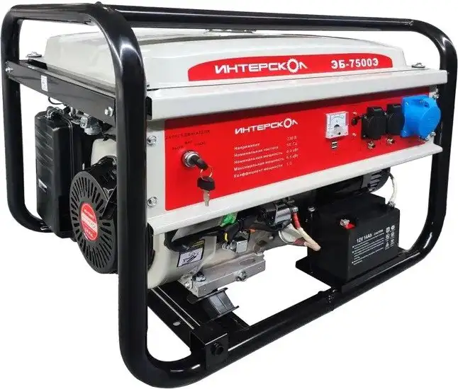 Бензиновый генератор Интерскол ЭБ-7500Э — это мощное устройство с максимальной активной мощностью 6,5 кВт, которое подойдет для работы в различных условиях. Он работает на четырехтактном двигателе объемом 420 см³, имеет топливный бак на 25 литров, что обеспечивает длительную работу без дозаправки. Генератор легко запускается с помощью электростартера или ручного старта и оснащен воздушным охлаждением. В нем есть розетки на 220 В и 380 В, а также USB-разъем для зарядки различных устройств. Он защищен от перегрузки и имеет индикатор уровня топлива, что облегчает эксплуатацию. Вес генератора составляет около 95 кг, его размеры — компактные и удобные для переноски. Он подходит для использования на стройках, в кемпингах или при аварийных отключениях электроэнергии. В комплект входитEverything необходимое для работы — инструменты, воронка и инструкция.