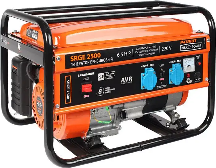 Бензиновый генератор Patriot Max Power SRGE 2500 — это надёжный источник энергии для дачи, дома или в случае отключения электричества. Он оснащён четырёхтактным двигателем с объёмом 196 см³, который работает на бензине из 15-литрового бака и обеспечивает мощность до 2,2 кВт. Генератор работает тихо, его уровень шума составляет всего 65 дБ. Есть возможность подключать устройства с одной фазой и получать постоянный ток 12 В для зарядки батарей. Устройство легко запускать вручную, а встроенные индикаторы показывают уровень топлива и состояние работы. За безопасность отвечает защита от перегрузки и вольтметр, который контролирует показатели электросети. Это удобный и мощный генератор, который стоит выбрать для различных задач.