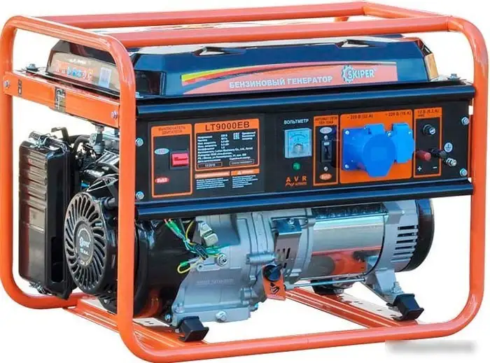 Бензиновый генератор Skiper LT9000EB предназначен для обеспечения электроэнергией в различных рабочих условиях. Он работает на четырехтактном двигателе внутреннего сгорания с мощностью до 6.5 кВт и производит стабильное электроснабжение для однополевых нагрузок. Вместительный топливный бак объемом 25 литров позволяет непрерывно работать до 8 часов без дозаправки. Генератор оснащен электростартером для удобства запуска и воздушным охлаждением, что обеспечивает его надежность. Он имеет розетки на 220 В и 380 В, а также индикаторы уровня топлива и масла для контроля состояния устройства. Защита от перегрузки и вольтметр помогают предотвратить повреждение подключенного оборудования. Конструкция выполнена в открытом исполнении, размеры позволяют разместить его на рабочей площадке. Вес устройства составляет около 70,5 кг, что делает его переносным и устойчивым. Также модель оснащена функцией контроля уровня масла и расходует около 2.8 литров топлива в час.