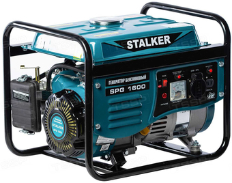 Этот бензиновый генератор Stalker SPG-1600 подходит для разнообразных работ благодаря своей компактной конструкции и высокой мощности. Он работает на двухтактном движке объемом 87 см3, что обеспечивает стабильную работу и долгий срок службы. Генератор имеет максимальную активную мощность 1.1 кВт и номинальную 0.9 кВт, что позволяет подключать различные бытовые приборы. Он оснащен одним фазным выводом, розетками 220 В 16 А и вольтметром для контроля напряжения. Объем топливного бака составляет 6 литров, благодаря чему устройство работает длительное время без дозаправки, расход топлива — 0.6 л/ч. Генератор запускается вручную и охлаждается воздушным способом. Заявлены надежность и простота использования, что делает его подходящим для временных и постоянных рабочих задач.