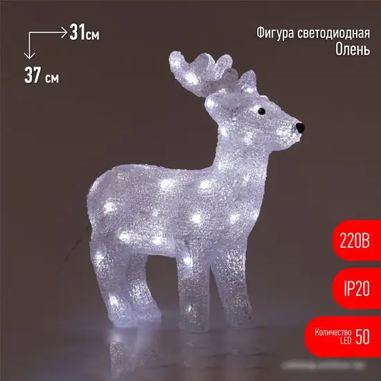 Эта 3D-фигура "ЭРА ENIOF-15" представляет собой объемное оленя, которое отлично подойдет для украшения помещения. Ее длина составляет 0,31 м, а высота — 0,37 м, что делает ее компактной и удобной для установки. Фигура оснащена 50 белыми лампами, которые создают яркое и постоянное свечение. Она подключается к электросети и проста в использовании. Благодаря защитному классу IP20, изделие безопасно для использования в помещении. Свет постоянно светит белым светом, создавая уютную атмосферу. Крепкая конструкция обеспечивает долговечность и надежность. Эта 3D-фигура легко вписывается в интерьер и украшает его в праздничные и повседневные дни.