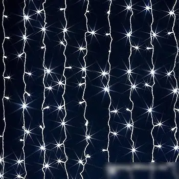 дождь (занавес), длина 2 м, 300 ламп, свечение постоянное, IP44, 30 Вт, провод прозрачный ПВХ