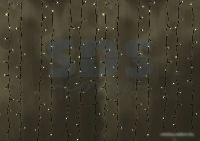 дождь (занавес), длина 2 м, 760 ламп, свечение постоянное, IP44, 45 Вт, провод черный ПВХ