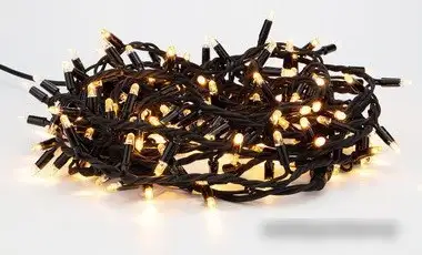гирлянда, для использования в помещении/на улице, длина 10 м, 100 ламп, питание от сети, свечение мерцающее, IP65, провод черный резиновый