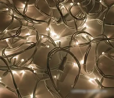 гирлянда, для использования в помещении/на улице, длина 10 м, 100 ламп, питание от сети, свечение мерцающее, IP65, провод черный резиновый