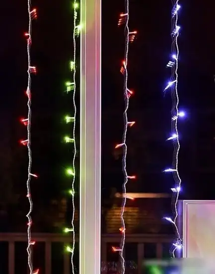 дождь (занавес), для использования в помещении/на улице, длина 3 м, 400 ламп, питание от сети, свечение мерцающее, IP65, провод белый резиновый