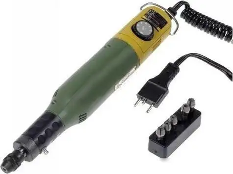 Гравер Proxxon Micromot 60E 28510 — это компактный инструмент с мощностью 40 Вт, который идеально подходит для тонкой работы. Он позволяет регулировать скорость вращения в диапазоне от 5 000 до 20 000 об/мин, что обеспечивает точность и контроль при работе. Гравер оснащён цанговым зажимом диаметром от 1.0 мм до 3.2 мм, что делает его универсальным для различных насадок. Благодаря небольшой массе и эргономичной форме он удобно лежит в руке. Инструмент хорошо подходит для ремонта, моделирования и гравировки. В устройстве отсутствует подсветка рабочей зоны, поэтому потребуется дополнительное освещение. Высокая скорость и качество сборки позволяют выполнять даже тонкие и деликатные задания. Гравер легко подключается к электросети и быстро запускается. Он идеально подходит для тех, кто ценит качество и удобство при работе с мелкими деталями.