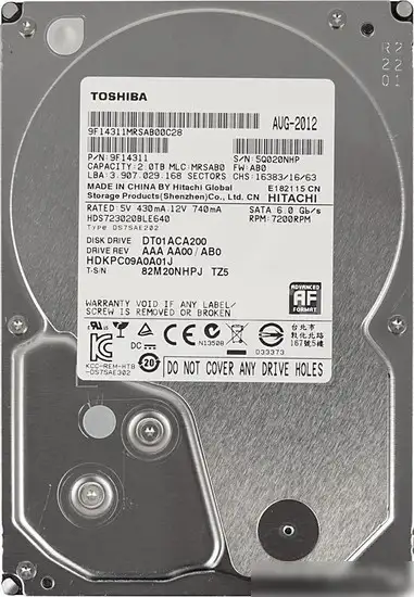 Жесткий диск Toshiba DT01ACA 2TB предназначен для хранения больших объёмов данных, его объём составляет 2 ТБ. Он использует форм-фактор 3.5" и интерфейс SATA 3.0 с скоростью передачи данных до 6 Гбит/с. Диск работает быстро благодаря скорости вращения шпинделя 7200 об/мин и буферу объёмом 64 МБ. Он подходит для использования в настольных компьютерах и серверных систем. Благодаря низкому уровню шума при чтении и записи, устройство остается тихим во время работы. Надёжность обеспечивается ударной нагрузкой в нерабочем положении до 300 G и энергопотреблением лишь 6.4 Вт при работе. Устройство не имеет аппаратного шифрования, поэтому рекомендуется использовать дополнительные меры защиты данных. Толщина диска — 26.1 мм, что подходит для большинства системных корпусов. В конструкции использована технология Advanced Format для более эффективной записи данных.