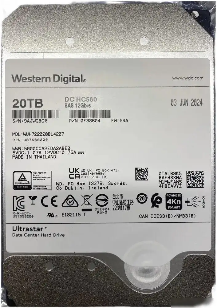 Жесткий диск WD Ultrastar DC HC560 20TB WUH722020BL4207