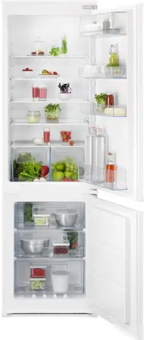 встраиваемый, скользящие направляющие, без No Frost, электронное управление, полезный объём: 257 л (195 + 62 л), перенавешиваемые двери, лоток для яиц, 54x54.9x177.2 см, белый
