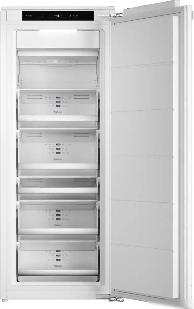 Морозильник ASKO FN31442EI — встраиваемая модель из Сербии с белым цветом и легкостью впишется в вашу кухню. Он оснащён системой No Frost, которая предотвращает образование льда и облегчает уход за прибором. В морозильной камере есть шесть отделений, общий объём — 178 литров, из которых полезный — 151 литр, что позволяет замораживать до 10 кг продуктов в сутки. Управление происходит сенсорной панелью внутри, есть дисплей и индикация температуры для удобства. Также доступна функция суперзаморозки, которая быстро замораживает продукты и сохраняет их свежими. Морозильник работает с классом энергоэффективности A++, он тратит около 171 кВт·ч электроэнергии в год, что помогает снизить ваши расходы. Благодаря конструкции с жёстким креплением мебельного фасада и размеру 55,5 × 55 см, он легко встраивается в нишу для встройки. Модель обладает освещением камеры и простым управлением, оно расположено внутри прибора для удобства использования. Этот морозильник — хороший выбор для тех, кто ищет вместительный и энергоэффективный встраиваемый морозильник.
