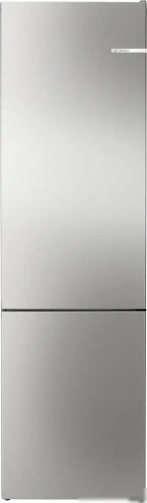 Холодильник Bosch Serie 4 KGN39VIEB — это вместительное и практичное устройство для хранения продуктов. Он выполнен в стильной нержавеющей стали и универсально рассчитан для установки в любом помещении. В холодильной камере размещено 279 литров пространства, а в морозильной — 89 литров. Полки из стекла и четыре дверных балкона позволяют удобно раскладывать продукты. Встроенные ручки делают внешне аккуратным и простым в использовании. Управление осуществляется при помощи электронного блока, а информация о температуре отображается на дисплее. В устройстве есть функции суперзаморозки, суперохлаждения, режим ECO и сигнал открытия двери. Полностью No Frost предотвращает образование льда и облегчает уход за техникой. Устройство обладает низким уровнем шума — всего 39 дБ, и отличается высокой энергоэффективностью. Также оно включает ящик для овощей и фруктов, а для любителей вина — специальная полка. Благодаря переносным дверям и настройке температуры, хранение становится максимально комфортным.