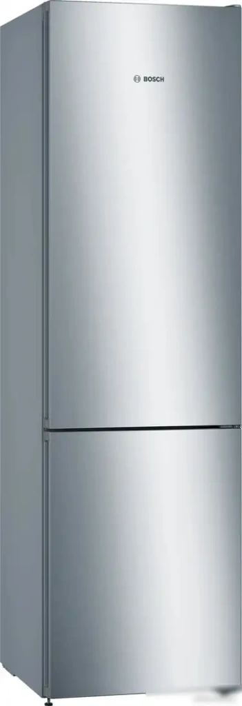 Холодильник Bosch Serie 4 KGN39VLEB — это просторное и надежное устройство, выполненное в стиле нержавеющей стали. Он имеет полностью систему No Frost, которая предотвращает образование льда и облегчает уход за техникой. Объем холодильной камеры составляет 279 литров, а морозильной — 89 литров, что позволяет хранить много продуктов. Внутри расположены четыре стеклянных полки и четыре дверных балкона для удобной организации хранения. Есть ящик для овощей и фруктов, а также полка для вина и лоток для яиц. Управление осуществляется электронным блоком, а на дисплее отображается температура. В холодильнике есть функции суперзаморозки и суперохлаждения, а также сигнал о открытой двери. Устройство работает тихо — уровень шума всего 39 дБ, и оно устанавливается отдельно в любом месте кухни.