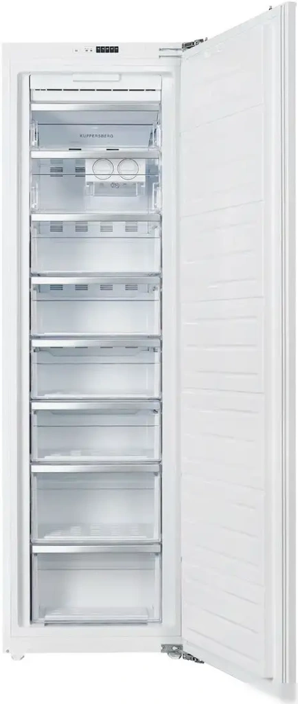 Морозильник KUPPERSBERG SFB 1770 встраиваемый и белого цвета отлично впишется в любую кухню. Он оснащен системой No Frost, которая предотвращает образование льда и облегчит уход за техникой. Внутри расположено 8 отделений, и общий полезный объём составляет 197 литров, что позволяет хранить большое количество продуктов. Управление происходит через электронный дисплей внутри, а установлен режим суперзаморозки для быстрого охлаждения продуктов. В морозильной камере есть генератор льда и освещение, которое облегчает поиск нужной продукции. Устройство работает тихо, уровень шума — 41 дБ, и не мешает в повседневной жизни. Благодаря антибактериальному пластику внутри, продукты сохранят свежесть дольше. Двери переносные, что обеспечивает гибкость при установке. Этот морозильник отличается высокой энергоэффективностью класса A+ и простым управлением.