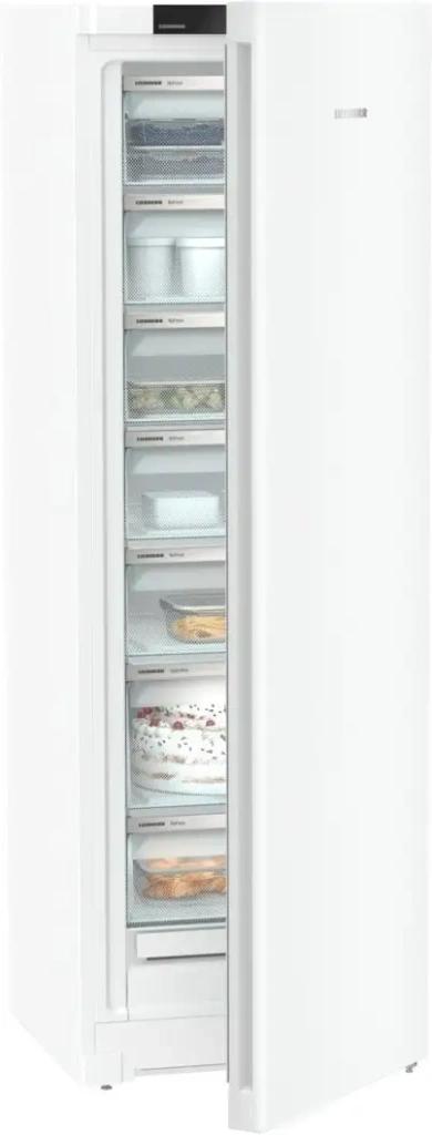Морозильник Liebherr FNd 522i Plus NoFrost выполнен из Германии и предназначен для отдельностоящего размещения. Он имеет 7 отделений с общим объемом 271 литр, что позволяет удобно хранить много продуктов. Благодаря системе No Frost не образуется наледь, а автоматическая разморозка избавляет от необходимости ручной очистки. Управление осуществляется сенсорным дисплеем внутри, на котором отображается температура и работают различные функции. Морозильник работает очень тихо — всего 38 дБ, и экономит электроэнергию с классом A++. Он способен быстро заморозить до 16 кг продуктов в сутки и поддерживает режим суперзаморозки. Корпус оснащен переносимыми и перенавешиваемыми дверями с автодоводчиком, что облегчает установку и использование. Устройство подходит для неотапливаемых помещений и различается современным стилем и надежностью.