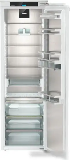 Этот встроенный однокамерный холодильник Liebherr IRBci 5170 Peak легко впишется в любую кухню благодаря своему современному дизайну и белому цвету. Он работает без системы No Frost, что исключает образование льда и облегчает уход за техникой. Внутри находится 8 стеклянных полок, которые можно регулировать для удобства хранения, а дверь оснащена 6 пластиковыми и стеклянными балконами для продуктов и напитков. Объем холодильной камеры составляет 296 литров, есть ящик для овощей и фруктов с регулируемой влажностью. Управление осуществляется через сенсорный дисплей внутри, где можно выбрать режим суперохлаждения, ECO или активировать блокировку от детей. Двери можно перенавешивать и оснащены автодоводчиком для комфортного открытия и закрытия. Уровень шума устройства не превышает 32 дБ, а уровень энергии — класс C, что делает его экономичным. Встроенный фильтр борется с бактериями, сохраняя продукты свежими дольше. Благодаря этим функциям холодильник обеспечивает удобное, эффективное и долговременное хранение ваших продуктов.