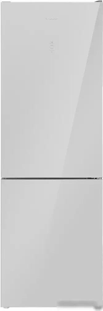 отдельностоящий, полный No Frost, электронное управление, класс A+, полезный объём: 317 л (223 + 94 л), перенавешиваемые двери, лоток для яиц, отделка: стекло, 59.5x63.5x185 см, серебристый