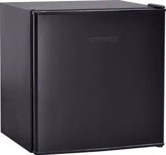 Однокамерный холодильник Nordfrost (Nord) NR 506 B обладает вместительностью 60 литров, из которых 59 литров занимает холодильная камера. Он выполнен в чёрном цвете и легко впишется в разные кухни благодаря компактным размерам — шириной 50 см и высотой 52,5 см. Управление осуществляется механическим поворотным регулятором внутри корпуса. Холодильник работает очень тихо — уровень шума всего 39 дБ, и не издаёт подсветки или дисплея. Он оснащён двумя дверными полками из пластика и металла, а также удобной дверной полкой для яиц. Благодаря встроенной ручке и перенавешиваемым дверям его можно установить как с левой, так и с правой стороны. Модель имеет класс энергоэффективности A+ и потребляет около 110 кВт·ч электроэнергии в год, что помогает экономить. Этот холодильник отлично подходит для небольших кухонь и для тех, кто ценит простоту в использовании.
