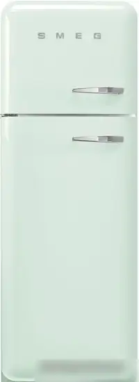 Холодильник Smeg FAB30LPG5 — это вместительный шкаф с верхней морозильной камерой. Он имеет общий объем 298 литров, из которых 222 предназначены для хранения свежих продуктов, а 72 — для замороженных. Устройство работает очень тихо, создавая уровень шума всего 37 дБ, и отличается высокой энергоэффективностью класса A+++. Управление осуществляется механически, а внутренняя подсветка помогает легко найти нужные продукты. Холодильная камера оснащена стеклянными полками и ящиком для овощей с регулировкой влажности, что сохраняет свежесть фруктов и овощей дольше. Морозильная камера обладает мощностью замораживания 4 кг в сутки и удобной полкой для хранения. Корпус окрашен в зеленый цвет, а внешние ручки позволяют удобно открывать дверь. В холодильнике есть сигнал о открытой двери, что помогает избегать потерь холода. Устройство отличается ретродизайном и подходит для тех, кто ценит стиль и практичность.