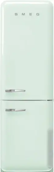 Холодильник Smeg FAB32RPG5 выполнен в стильном пастельном зеленом цвете и предназначен для установки свободно в помещении. Он оснащен одной компрессорной системой с полным No Frost, что избавляет от необходимости размораживания. Вместимость холодильной камеры составляет 234 литра, а морозильной – 97 литров, всего устройство умещает 365 литров. В комплектации есть три регулируемые стеклянные полки, ящик для овощей и фруктов с влажностью, а также три дверных балкона для хранения мелких продуктов. Управление осуществляется через светодиодный дисплей внутри, а также есть возможность дистанционного управления без Wi-Fi. Энергоэффективность устройства – класс А++, уровень шума не превышает 37 дБ, а инверторная технология помогает снизить потребление электроэнергии. Специальные функции включают режим ECO, отпуск и суперохлаждение для быстрого охлаждения продуктов.