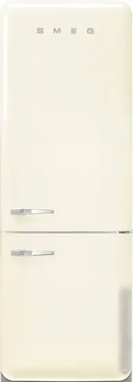 Холодильник Smeg FAB38RCR5 — это свободностоящее устройство с классическим ретро-дизайном в кремовом цвете. Он оснащён одним компрессором и системой полного No Frost, которая избавляет от необходимости ручной разморозки. В холодильной камере расположены четыре стеклянные полки и ящик для овощей и фруктов с регулируемой влажностью, что помогает сохранять свежесть продуктов надолго. Объём холодильной части составляет 355 литров, а морозильной — 155 литров, что идеально подходит для семьи. Управление осуществляется с помощью светодиодного дисплея внутри, есть функция незамедлительного охлаждения и блокировка от детей. Уровень шума всего 41 дБ, а энергетическая эффективность класса A++ помогает экономить электроэнергию. В морозильной камере есть генератор льда и функция суперзаморозки для быстрого охлаждения продуктов. Этот холодильник работает тихо и надёжно, сохраняя свежесть продуктов при помощи антибактериального фильтра и ионизации.