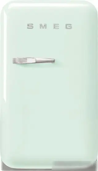 Однокамерный холодильник Smeg FAB5RPG5 — компактное устройство в стильном бирюзовом цвете, идеально подходящее для небольших помещений. Он оснащён одним компрессором и механическим управлением, что делает работу простей и надёжной. В холодильнике есть 4 стеклянных полки и два дверных балкона для удобного хранения продуктов. Общий объём составляет 38 литров, из них полезный — 34 литра, что подходит для хранения свежих продуктов. Блюда и напитки хранятся при низком уровне шума — 40 дБ, а класс энергоэффективности A+++ позволяет экономить электроэнергию. Внутреннее освещение корпуса отсутствует, но дверь открывается легко за счёт внешних ручек. Устройство не обладает функциями дополнительных зон или автодоводчика дверей, а управление расположено внутри корпуса. Благодаря высокому энергоэффективному классу, он расходует всего 54 кВт·ч электроэнергии в год. Этот холодильник отлично впишется в любой интерьер благодаря ретро-дизайну и минималистичному исполнению.