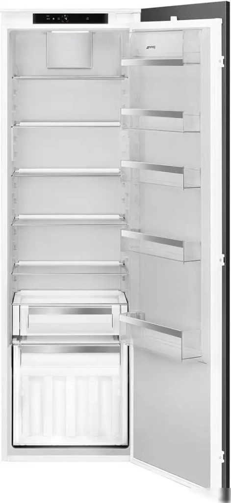 Однокамерный встраиваемый холодильник Smeg S9L174D1D производства Италии отлично подходит для современных кухонь. Он имеет вместимость 310 литров, что позволяет удобно хранить продукты для всей семьи. Управление осуществляется с помощью электронного дисплея и интуитивных настроек, включая функции суперохлаждения и отпуска. Защита от раскрытой двери сигнализирует о необходимости закрыть дверцу, а переносные двери обеспечивают гибкость в установке. Холодильник оснащён системой инверторных компрессоров, которая уменьшает расход электроэнергии и сохраняет тишину работы на уровне 32 дБ. Внутри расположено 6 стеклянных полок, ящик для овощей и 5 удобных дверных балконов для мелочей. Двери имеют жёсткое крепление и могут пере-вешиваться. Благодаря классам SN, N, ST этот холодильник универсален для различных климатических условий. Он сочетает стильный дизайн с высокой функциональностью и энергоэффективностью.