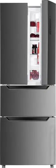 Холодильник TECHNO FS4-36 BI – это вместительный и современный прибор с французской дверью и полным No Frost, который предотвращает образование льда. Он имеет общий объем 356 литров, из которых 185 литров занимают холодильная камера и 115 литров морозильная. Энергоэффективность класса A++ помогает экономить электроэнергию, а устройство работает при уровне шума всего 40 дБ. Управление осуществляется через внешний электронный дисплей с индикацией температуры, что удобно и быстро. В холодильной части расположены 4 стеклянные полки и 6 дверных отсеков, в том числе ящик для овощей и фруктов с возможностью регулировки влажности. Для быстрого охлаждения и заморозки доступны функции суперзаморозка и суперохлаждение, а также сигнал о открытой двери. Инверторная технология обеспечивает тихую работу и долговечность устройства. Холодильник удобно устанавливается благодаря встроенным ручкам и компактным размерам, идеально подходит для семьи.