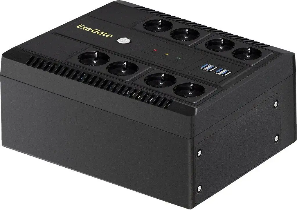 Источник бесперебойного питания ExeGate Neo NNB-1000.LED.AVR.8SH.CH предназначен для защиты техники от отключений и скачков напряжения. Он имеет 8 розеток Schuko, из которых 8 с резервным питанием, что позволяет сохранять работу устройств при отключении электроэнергии. Время автономной работы составляет до 6,28 минут при нагрузке 30%, что помогает завершить работу или сохранить важные данные. Устройство поддерживает форму выходного напряжения в виде приближенной синусоиды и работает при входном напряжении от 140 до 300 В. Оно оснащено светодиодной индикацией и USB-портом для связи с компьютером.