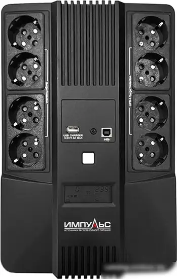 Источник бесперебойного питания Импульс Мастер 800 MT80107 обеспечивает стабильное питание для ваших устройств. Он имеет 8 выходных розеток, из них 4 предоставляют резервное питание при отключении электроэнергии, что позволяет продолжать работу оборудования в течение примерно 5 минут. Устройство подключается через стандартные Schuko-розетки, поддерживая входное напряжение от 162 до 290 В и выдавая стабильное выходное напряжение 220-240 В с аппроксимированной синусоидой. Благодаря функции холодного старта вы можете включать ИБП без подключения к электросети. Устройство защищает линии связи и имеет светодиодную индикацию, чтобы контролировать состояние. Оно подключается по интерфейсам USB, включая USB Type-A и Type-B, и сигнализирует о неисправностях звуковым сигналом. Максимальный уровень шума составляет 45 дБ, что делает его допустимым для использования в офисах и домах. Внутри находится свинцово-кислотный аккумулятор с ёмкостью 9 Ач, который полностью заряжается за 8 часов. Размеры устройства — около 92x309x202 мм, вес — 4.9 кг.