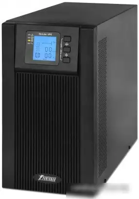 Источник бесперебойного питания Powerman Online 3000 Plus предназначен для защиты техники от перебоев с электричеством. Он имеет две розетки евро с заземлением и две резервные для работы при неполадках с питанием. Мощность устройства составляет 2700 Вт, а полная — 3000 ВА, что позволяет подключать крупную технику. Устройство обеспечивает чистую синусоиду на выходе и стабильно поддерживает напряжение 220 В. Для удобства есть дисплей и звуковой сигнал, показывающие состояние работы. Также имеются интерфейсы USB и RS-232 для подключения к компьютеру.