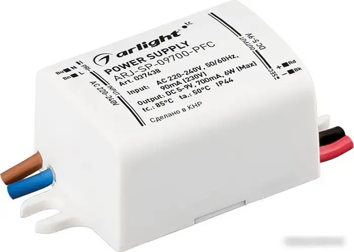 Блок питания Arlight ARJ-SP-09700-PFC обеспечит стабильное питание ваших устройств. Он выполнен в компактном корпусе из пластика, что облегчает его размещение. Входное напряжение варьируется от 220 до 240 В, а выходное — от 5 до 9 В, что подходит для различных гаджетов и устройств. Мощность блока составляет 6.3 Вт, чего достаточно для маломощных электронных устройств. Он легко подключается с помощью стандартного провода разъема. Размеры блока — 55 мм в длину, 27 мм в ширину и 21 мм в высоту, что делает его незаметным. Благодаря регулировке выходного напряжения, вы можете настроить его под нужды вашего оборудования. Этот блок питания устойчив к перепадам напряжения и обеспечивает безопасную работу устройств.