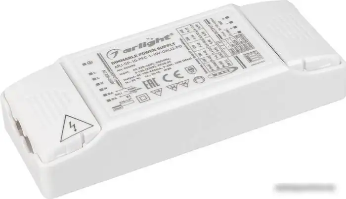 Блок питания Arlight ARJ-SP-10-PFC-1-10V-DALI2-PD обеспечивает стабильное питание для ваших устройств, регулируя напряжение в диапазоне от 9 до 40 В. Он оснащен встроенным диммером, позволяя управлять яркостью светильников и создавать комфортную атмосферу. Корпус изготовлен из прочного пластика, что облегчает установку и защиту внутренней части. Блок питания подходит для работы с нагрузками до 10 Вт и подключается напрямую к сети 220–240 В. Благодаря степени пыле- и влагозащиты IP20 блок легко использовать внутри помещений. Он не имеет разъема подключения, что упрощает монтаж. Устройство компактное: длина — 120 мм, ширина — 46 мм, высота — 23.8 мм. Различные выходные напряжения позволяют подобрать оптимальный вариант для ваших светильников. Регулируемый диапазон напряжения помогает точнее настроить работу системы освещения. Благодаря встроенному диммеру устройство делает управление освещением простым и удобным.