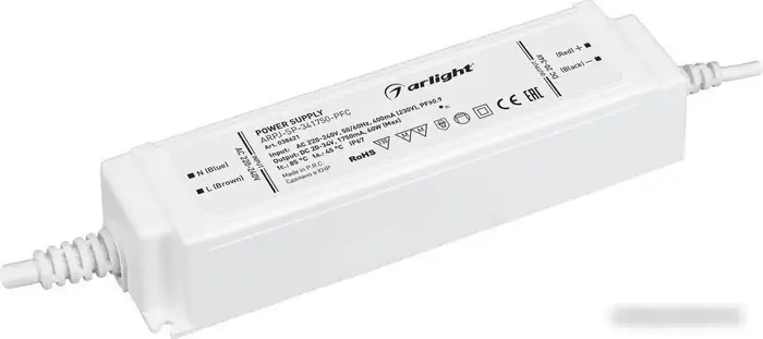 Блок питания Arlight ARPJ-SP-341750-PFC обеспечивает стабильное питание с мощностью 60 Вт и диапазоном регулировки выходного напряжения от 20 до 34 В, что позволяет точно настроить его под ваши нужды. Его корпус из прочного пластика с защитным кожухом и степенью защиты IP67 гарантирует надежную работу даже при пыли и влаге. Он подключается через стандартный разъем для провода, легко интегрируется в различные системы. Компактные размеры (166 х 43 х 33 мм) облегчаете его установку в ограниченных пространствах. Блок питания автоматически регулирует выходное напряжение, обеспечивая безопасность подключенного оборудования. Он подходит для использования с различными устройствами, требующими стабильного питания. Надежность и простота использования делают его идеальным выбором для множества проектов.
