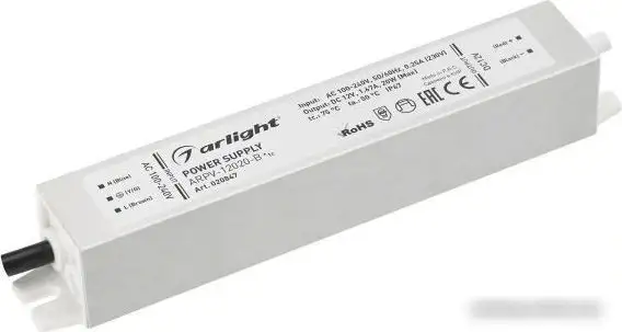 Блок питания Arlight ARPV-12020-B обеспечивает стабильное питание с мощностью 20 Вт и выходным напряжением 12 В. Он предназначен для компактных и тонких устройств благодаря ультратонкому корпусу, сделанному из прочного пластика. Устройство подключается через проводной разъем и подходит для использования с любым входным напряжением 100–240 В. Благодаря степени пыле- и влагозащиты IP67, блок питания можно использовать в условиях высокой влажности и пыли. Его размеры составляют всего 162×25×27 мм, что позволяет легко интегрировать в ограниченные пространства. Мощность и надежность обеспечивают стабильную работу подключенных устройств. Этот блок питания подходит для различных применения, где важно компактное и защищенное питание. Он работает при максимальном токе 1.67 мА, что подходит для небольших электронных систем. Надежность и простота установки делают его универсальным выбором для бытовых и промышленных решений.