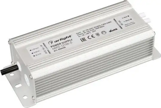 Блок питания Arlight ARPV-12100-D обеспечивает стабильное питание устройств с выходным напряжением 12 В и мощностью 100 Вт. Он легко подключается через проводной разъем и подходит для использования в различных условиях благодаря прочному пластиковому корпусу с защитой IP67. Устройство работает при входном напряжении от 170 до 265 В, что позволяет использовать его в разных странах. Благодаря своей компактной размеру — 178 мм длины, 71 мм ширины и 46 мм высоты — блок легко разместить в любых условиях. Степень защиты IP67 гарантирует пыле- и влагозащиту, что делает его подходящим для уличных установок или влажных помещений. Он способен стабилизировать выходное напряжение и обеспечивать надежную работу подключенных устройств. Устройство обладает долговечностью и высокой надежностью в эксплуатации. Также блок питания помогает избежать перебоев с электропитанием, защищая оборудование от повреждений.